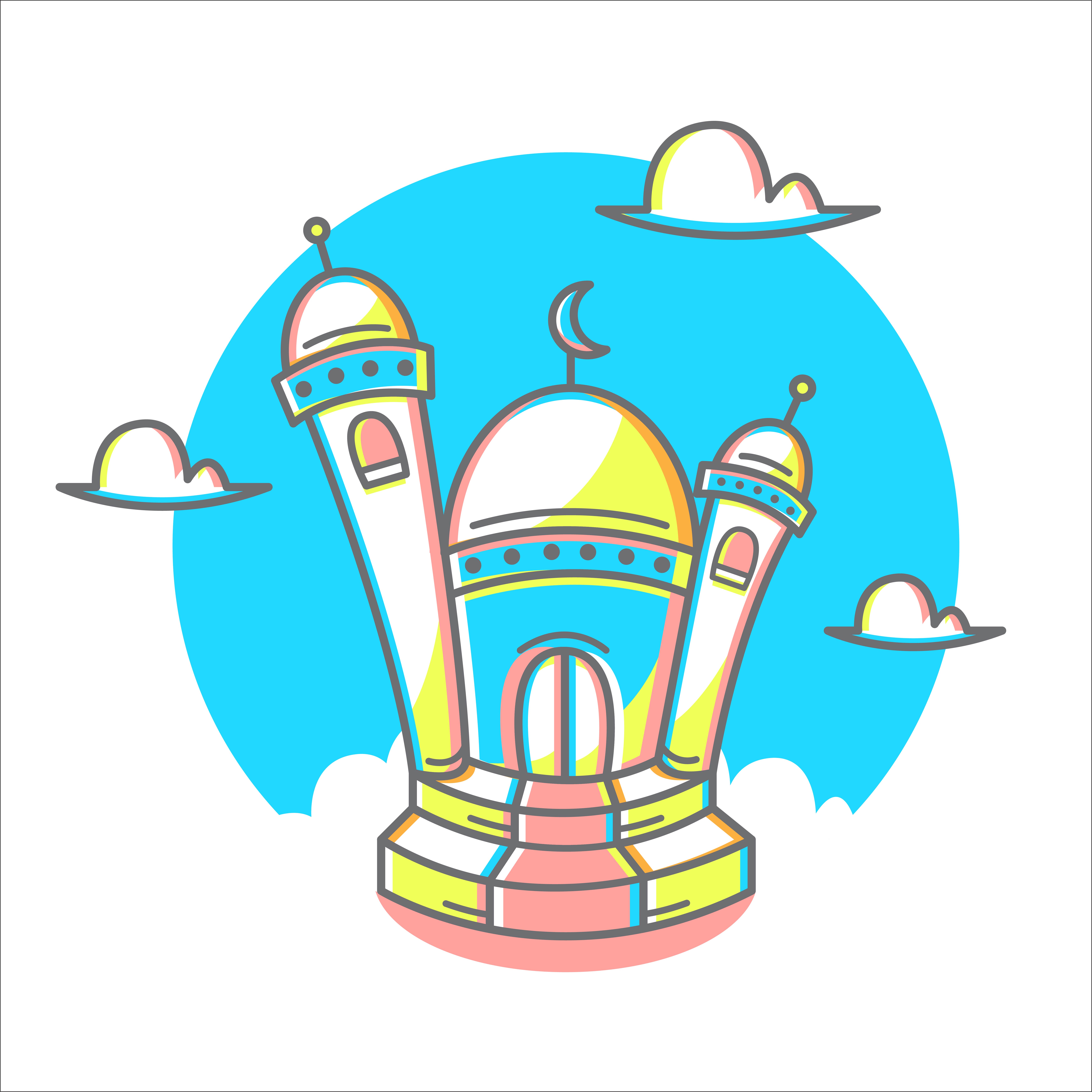 Cartoon Mosque On The Sky And Cloud Cute Simple And Suitable For