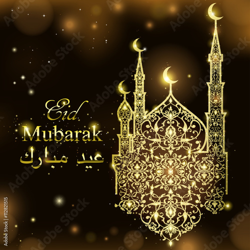 English Translate Eid Mubarak Beautiful Mosque On Sparkling