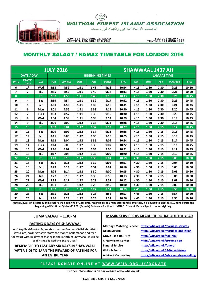 Wfia Lea Bridge Road Mosque On Twitter Prayer Timetable