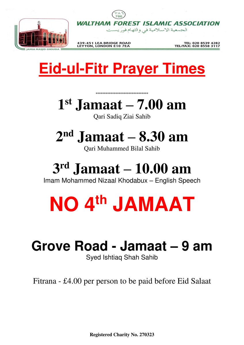 Wfia Lea Bridge Road Mosque On Twitter Eid Ul Fitr Prayer Times