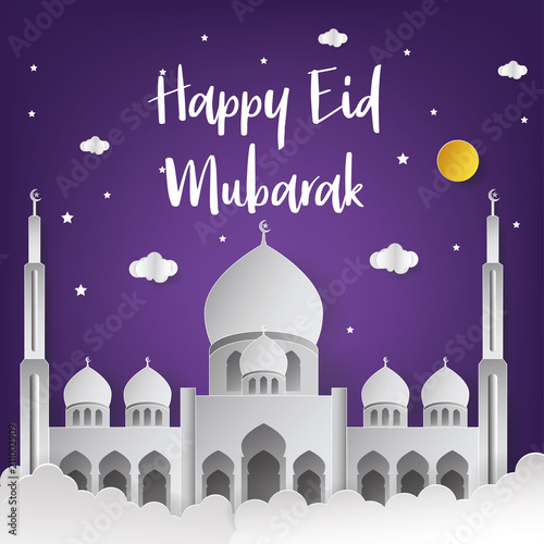 Happy Eid Mubarak Background With Mosque Vector Illustration