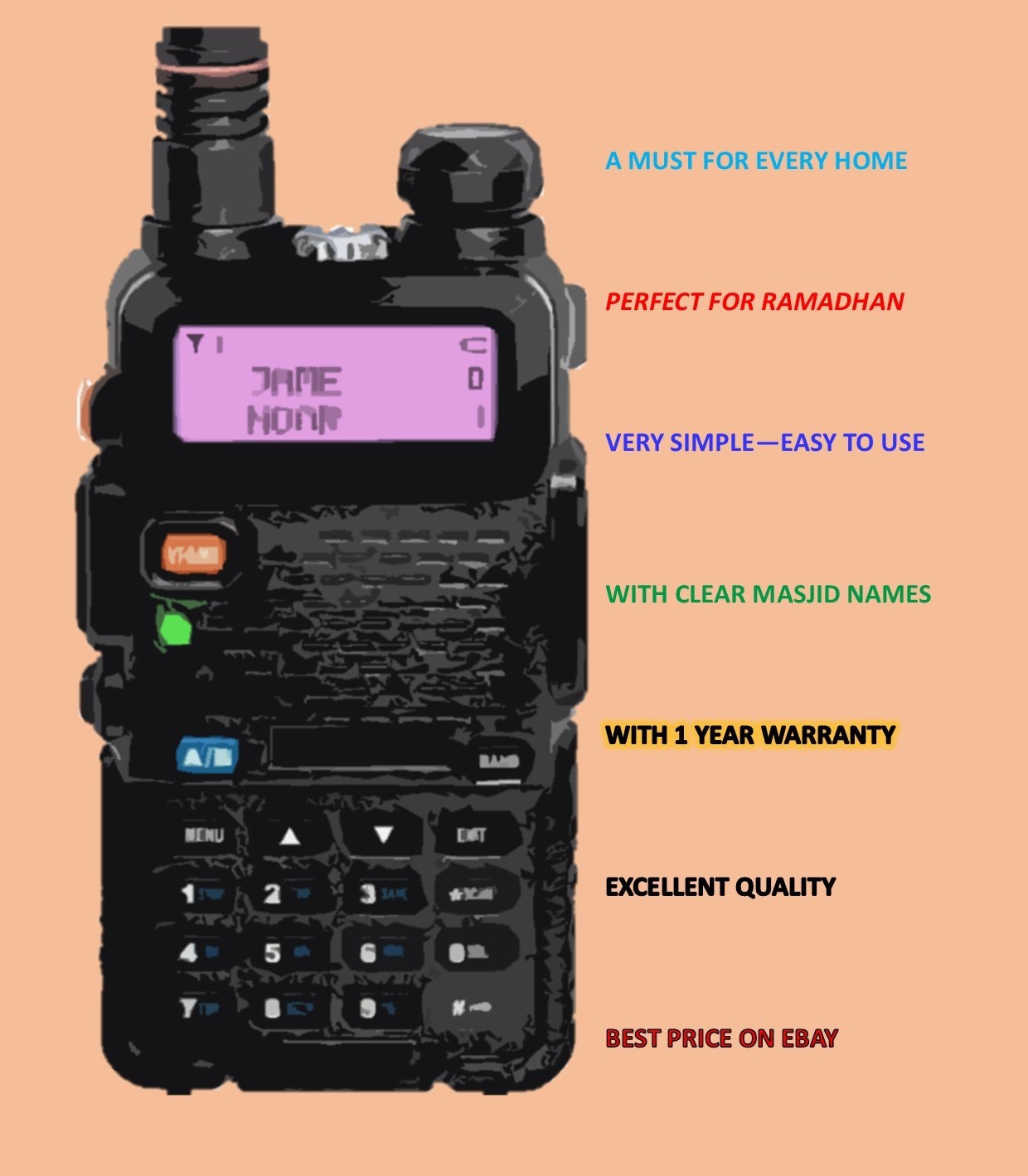 Brand new portable masjid receivers for sale. Let the adhaan and bayaans of the masjid also be heard at home for the family and children. Details about mosque receiver mosque radio mosque scanner best quality 20 viewed per day. Just message the masjid radio frequency and i ll program it.