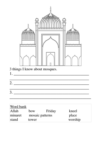 Places Of Worship Mosque Worksheet Worksheet Arabic English